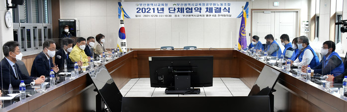 부산광역시교육청(교육감 김석준)과 부산시교육청공무원노동조합(위원장 조봉석)은 12월 29일 오전 10시30분 시교육청 별관 전략회의실에서 단체협약을 체결했다.