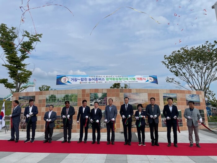 경남도와 합천군, 거창군은 12일 오후 거창 만남의광장에서 경남도 박석조 교통정책과장을 비롯하여 이재철 합천부군수, 이병철 거창부군수, 도의원, 군의원, 운수업체 및 교통카드사 관계자, 지역주민 등이 참석한 가운데 환승할인제 시행을 알리는 기념식을 개최했다.