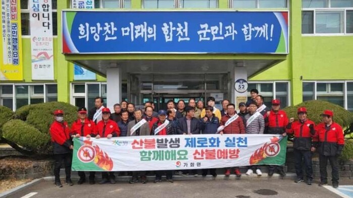 [합천=이영수 기자] 합천군 가회면(면장 박희종)은 지난 12일 면사무소에서 이장회의를 마친 후 직원 및 이장들과 함께 산불예방캠페인을 실시했다.이날 캠페인은 주요 산림 인접마을과 등산로에서의 쓰레기 소각행위 . 담뱃불 투기 . 영농부산물 소각행위 근절 등의 내용으로 홍보 활동을 펼쳤다.