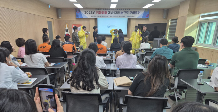 이날 훈련은 ▲생물테러 대비·대응 체계 및 초동조치 교육 ▲개인보호구 착·탈의 실습 ▲독소 다중탐지키트 검사법과 검체 이송 훈련 등 실습 위주의 프로그램으로 구성되어 현장 경험이 부족한 참가자들의 큰 관심을 받았다.