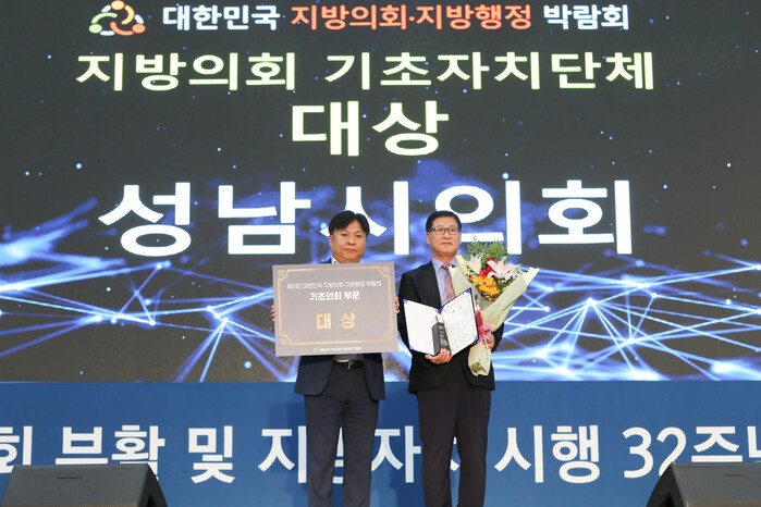 [성남=오왕석 기자] 성남시의회는 8일 대전컨벤션센터에서 열린 ‘제5회 대한민국 지방의회·지방행정 박람회’ 시상식에서 기초의회 부문 대상을 받았다.
