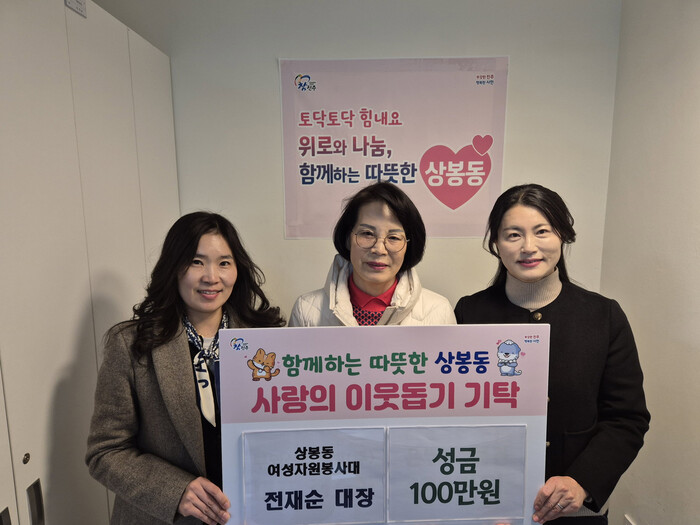 최은영 상봉동장은 “바쁜 일상 속에서도 지역사회를 위한 나눔을 실천해 주신 전재순 대장님께 진심으로 감사드린다”며 “기탁해 주신 성금은 도움이 필요한 분들께 정성껏 전달하겠다”고 말했다.