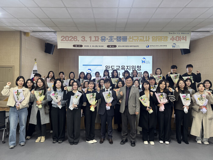 이철영 교육장은 “신규교사 한 사람 한 사람이 완도교육의 미래를 이끌 소중한 자산”이라며 “학생의 눈높이에서 생각하고 소통하는 교사로 성장해 주길 바란다”고 말했다. 이어 “교육지원청은 현장의 어려움을 함께 고민하며 든든한 동반자로서 지원을 아끼지 않겠다”고 강조했다.