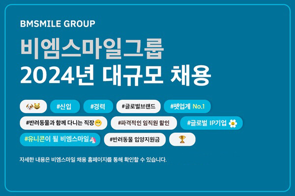 지원 서류는 3월 15일까지 비엠스마일 채용 홈페이지 접수하면 된다. 잡코리아 등 채용 플랫폼에서도 지원요건 및 전형일정 등 상세정보를 확인할 수 있다.