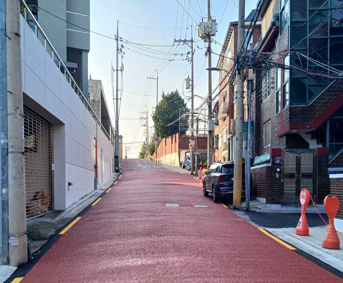 또한 붉은색 미끄럼방지 도막 포장재를 입혀 낙상사고를 예방하고 도로의 시인성도 개선했다.