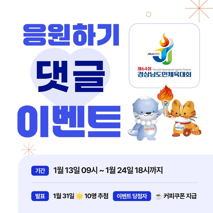 특히, 이번 공식 누리집 서비스 시작에 맞춰 별도의 응원게시판을 개설하여「제64회 경상남도민체육대회 응원댓글 달기 이벤트」를 오는 13일부터 24일까지 2주간 진행한다. 이벤트 게시판에 응원댓글을 입력한 사람들 중 일부를 선정해 소정의 상품을 제공할 계획이며, 당첨 결과는 31일 누리집에 공개될 예정이다.