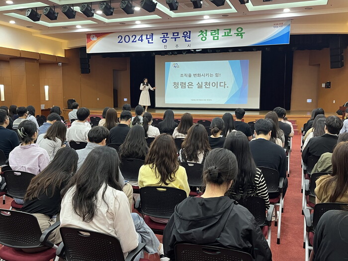 진주시는 13일 시청 시민홀에서 7급 이하 공무원 200여 명을 대상으로 청렴교육을 실시했다.