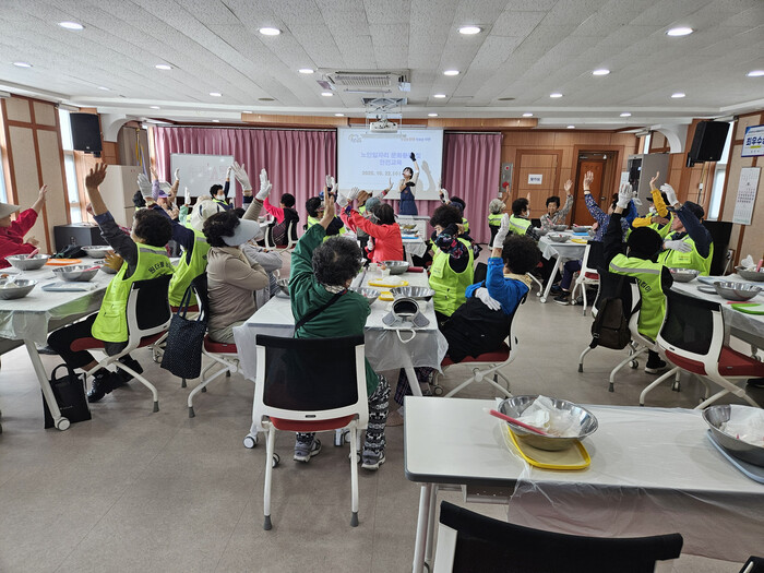 진주시 이현동행정복지센터는 지난 22일 다목적실에서 노인일자리 참여 어르신 75명을 대상으로 노인일자리 사업 참여에 대한 만족도를 높이고, 문화 활동을 통한 정서적 안정과 활력을 제공하기 위해 우리밀 스콘만들기 체험 및 안전교육을 실시했다.