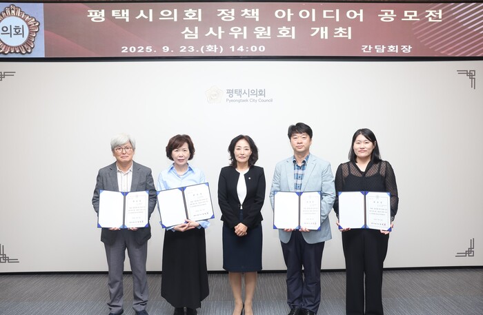 [평택=오왕석 기자] 평택시의회(의장 강정구)는 23일 ‘2025년 평택시의회 정책 아이디어 공모전’ 심사위원회를 개최해 우수상 1건, 장려상 1건을 선정했다.