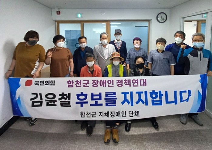 이에 김윤철 후보는 김홍기 합천군지회장 이하 회원여러분들의 성원에 보답하기 위해서라도 반드시 당선되어 장애인의 인권과 편의시설에 부족함이 없도록 약자의 편에서 생각하겠다는 속내를 보이며 지지 선언에 대한 감사의 마음을 간접적으로 표현하였다.
