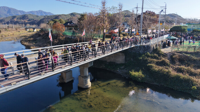 쌍백초등학교 학생들의 율동·노래·바이올린 연주 등 활기찬 식전공연으로 시작해 개회식이 이어졌으며, 보건소 건강관리과의 지도 아래 준비운동과 스트레칭이 진행됐다. 참가자들은 쌍백 양천 제방뚝을 따라 약 2km의 걷기 코스를 걸으며 일상에서 벗어나 늦가을 가을 정취와 함께 힐링의 시간을 즐겼다.