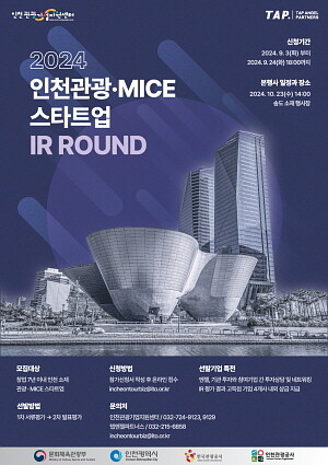 [인천=김형만 기자] 인천시와 인천관광공사는 10월 23일 개최되는 ‘2024 인천 관광 스타트업 IR 데이’에 참여할 관광·MICE 스타트업을 공모한다고 6일 밝혔다.