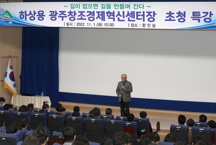 [영암=정찬남 기자] 하상용 광주창조경제혁신센터장(영암군 영암읍 회문리)이 지난 1일 영암군 11월 정레조회 명사로 초청돼, 군 공직자들을 대상으로 '길이 없으면 길을 만들어 간다'를 주제로 로컬 크리에이터(지역 고유특성과 자원환경을 기반으로 창의성과 혁신을 통해 사업적 가치를 창출하는 창업가) 활성화 지원과 지역 청년들의 역할과 책임에 대한 강의를 실시했다.