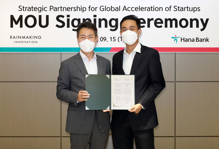 [시민일보 = 여영준 기자] 하나은행은 세계적인 엑셀러레이팅 기관인 ‘RAINMAKING INNOVATION (SG) PTE. LTD.’ 와 글로벌 스타트업 육성을 위한 전략적 업무협약(MOU)을 체결했다고 16일 밝혔다.