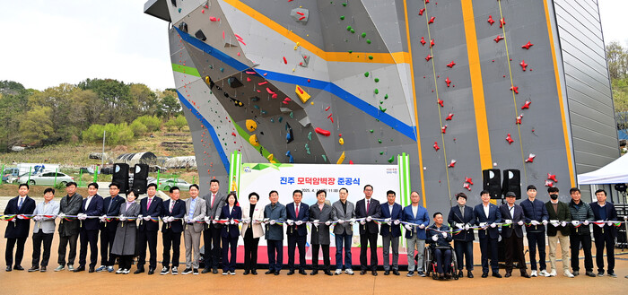 진주시는 14일 상대동 모덕체육공원 일원에 생활체육 활성화와 전문 산악인 육성을 위한 ‘진주 모덕암벽장’ 준공식을 개최했다.