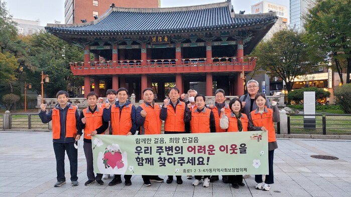 먼저 종로1·2·3·4가동은 지난 10월에 이어 11월 8일, 관철동 일대에서 동지역사회보장협의체와 함께 캠페인을 펼쳤다. 경제적 어려움을 겪고 있지만 복지 서비스를 받지 못하는 숨은 이웃을 선제적으로 찾아내고 적절한 도움을 주려는 뜻에서다. 참여자들은 유동 인구가 많은 길거리, 편의점, 식당 등을 고루 방문해 사회적 고립 위험 가구에 대한 신고체계 안내문과 홍보물품을 전달했다.