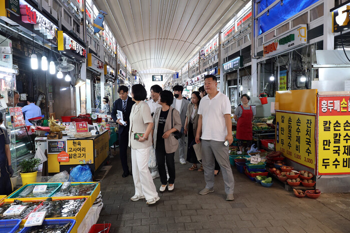 사당동에 위치한 남성사계시장을 찾은 의원들은 상인들과의 간담회를 통해 건의사항 및 현장 의견을 수렴했다.