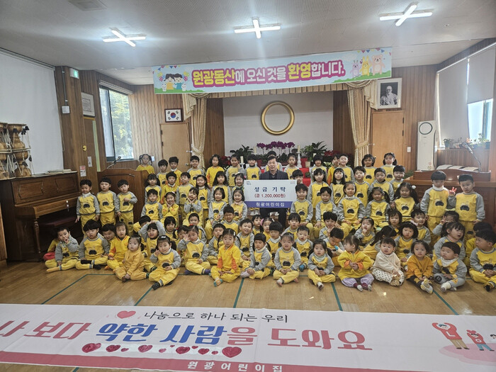 원광어린이집은‘참되게 자라자, 즐겁게 배우자, 모두에 감사하자’라는 원훈을 바탕으로 매년 꾸준히 어려운 이웃을 돕기 위해 성금을 기부하며 나눔과 배려를 실천하고 있어 지역사회 귀감이 되고 있다.