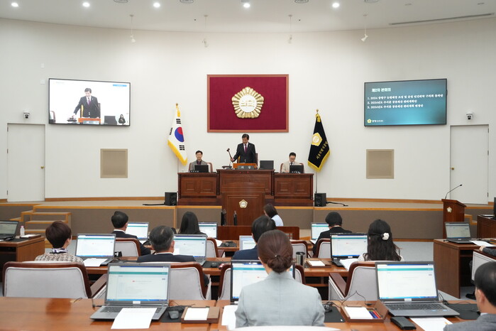 이날 조성연 의장은 폐회사에서 “이번 회기 동안 심도 있는 심의를 펼쳐주신 동료 의원과 원활한 심의를 위해 적극 협조해주신 집행부 공무원 여러분에게 감사드린다”며 “집행부에서는 처리된 안건과 의회의 권고사항이 차질 없이 구정에 반영되도록 후속 조치에 만전을 기해줄 것”을 당부했다.