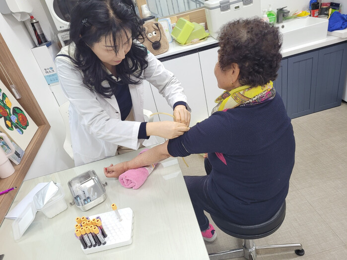 검사 대상은 의료 접근성이 상대적으로 낮은 읍·면 지역 만성질환자 600명이며 방문건강관리 전문 인력이 직접 보건의료기관(보건지소·보건진료소)을 찾아가 채혈을 실시한다. 검사항목은 ▲일반혈액검사 5종 ▲생화학검사 17종 ▲당화혈색소 등이며 전반적인 건강 상태와 간·신장 기능 및 콜레스테롤·혈당 조절 상태 등을 확인할 수 있다.