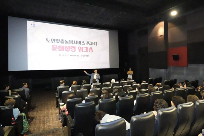 [성남=오왕석 기자] 신상진 성남시장이 31일 오후 야탑CGV에서 열린 ‘노인맞춤돌봄서비스 종사자 문화힐링 워크숍’에 참석해 현장 종사자들을 격려했다.