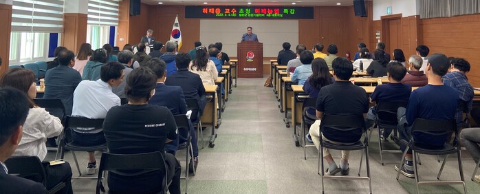 이날 강연은 농업환경 변화에 대한 이해와 미래농업에 대응하기 위한 자질 함양을 목적으로 실시했다.