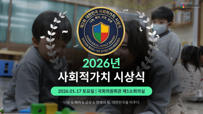 이번 시상식은 2026년 1월 17일 국회의원회관에서 개최될 예정이며, 사회적 가치 확산에 기여한 개인, 단체, 기업이라면 누구나 참여할 수 있다.