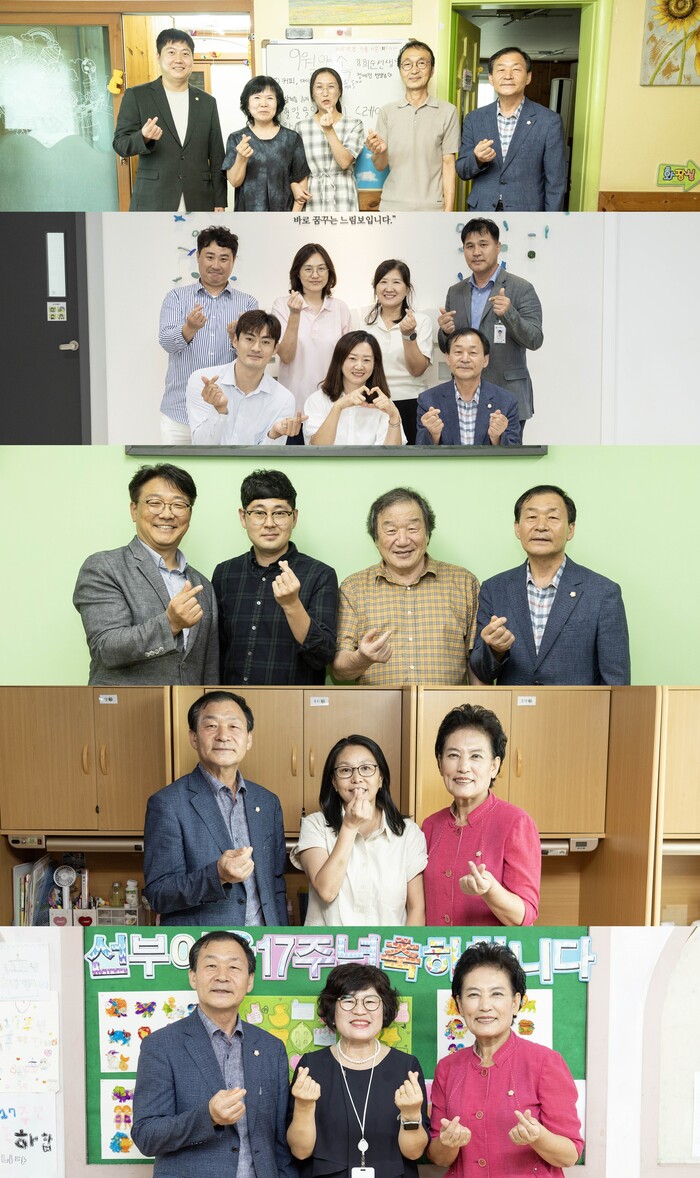 | ▲ 안산시의회 의원들이 추석 명절을 앞두고 지난 9일과 10일 지역 복지 시설 5곳을 위문 차 방문했다. 사진 위부터 차례대로 의원들이 반달말지원센터와 꿈꾸는 느림보, 둥근세상, 요셉의 집, 선부어울을 방문한 모습 /사진제공=안산시의회 |