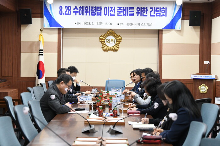 [순천=이문석 기자] 김태훈 전남 순천시의회 의원이 최근 순천시의회 소회의실에서 수해피해 위령탑 이전 준비를 위한 간담회를 가졌다.
