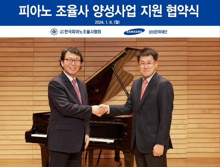 [시민일보 = 여영준 기자] 삼성문화재단과 (사)한국피아노조율사협회는 서울 리움미술관 강당에서 ‘2024 국내 피아노 조율사 양성사업’ 지원 협약식을 개최했다고 10일 밝혔다.