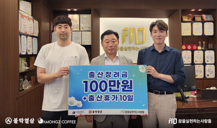 우리 동네 고기맛집 프랜차이즈 브랜드 ‘막창삼겹 불막열삼’과 커피 프랜차이즈 브랜드 ‘아몽즈커피’를 운영하는 꿈을실현하는사람들㈜ 오몽석 대표가 2024년 이후 출산한 임직원 2명에게 축하와 감사의 마음을 담아 가족당 ‘출산축하금 100만 원’을 전달했다.