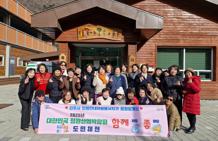 진주시 민원안내 자원봉사회(회장 최명심)는 12일 회원 39명이 참여한 가운데 ‘월아산 숲속의 진주’를 견학하고 단합행사 및 간담회를 개최했다.