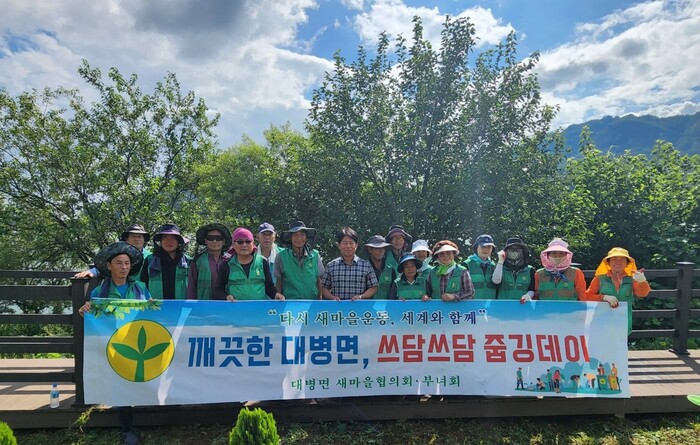 이날 회원들은 더운 날씨에도 불구하고 회양3거리부터 용문정 주변에 무단으로 버려진 생활쓰레기를 수거하며 청정한 관광지로서 아름다운 대병면을 가꾸기 위해 노력했다. 고향에 찾아오는 가족들을 반갑게 맞이하는 마음으로 진행된 추석맞이 대청소여서 더 의미 있는 행사였다.