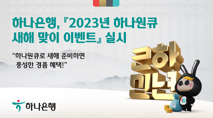 [시민일보 = 여영준 기자] 하나은행은 모바일 앱 '하나원큐'를 통해 '2023년 하나원큐 새해 맞이 이벤트'를 내년 1월27일까지 실시한다고 23일 밝혔다.