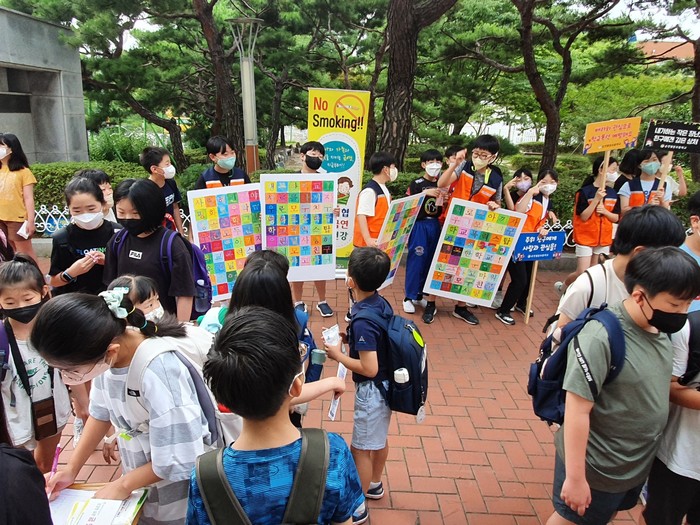 전남 순천시는 지난 7일 순천교육지원청과 함께 왕운초등학교에서 등굣길 금연 캠페인을 전개했다. 이날 캠페인에서는 청소년 흡연을 예방하고 금연으로 이끄는 생활습관 안내 리플릿을 배부하고 금연서약서 작성 및 청소년·성인 등 누구나 이용 가능한 금연클리닉을 홍보했다. 사진은 이날 캠페인이 펼쳐지고 있는 모습. (사진제공=순천시청)