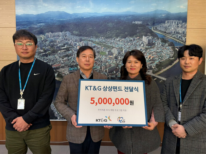 이번 성금은 KT&G의 ‘상상펀드’기금으로 조성됐으며, 지역의 어려운 이웃들을 위한 외식 체험 지원비용으로 사용될 예정이다.