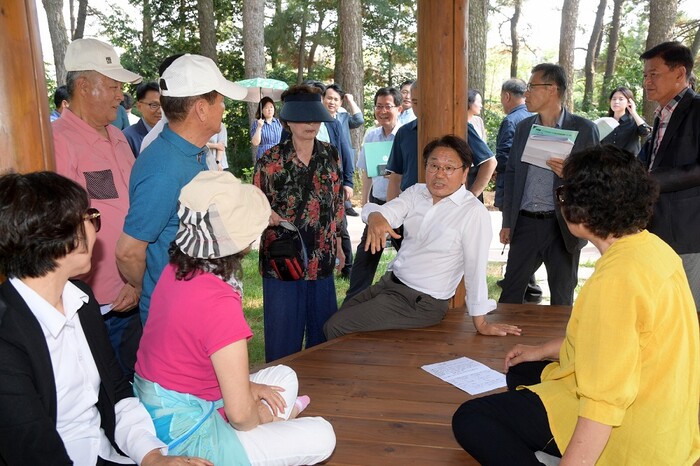 | ▲ 강기정 광주광역시장이 12일 오후 화정근린공원에서 주민들과 대화를 나누고 있다. /광주광역시 제공 |