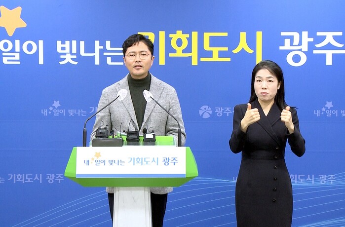 | ▲ 김광진 광주광역시 문화경제부시장이 29일 오후 시청 5층 브리핑룸에서 ‘전방, 일신방직 부지’공공기여 협상결과 발표 기자회견을 하고 있다./광주광역시 제공 |