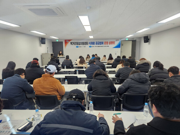 진주시는 지난 7일부터 8일까지 먹거리통합지원센터에서 식재료 공급업체 대표자와 먹거리통합지원센터 출하농가회 80명을 대상으로 ‘2025년도 먹거리통합지원센터 식재료 공급업체 운영 설명회’를 가졌다.