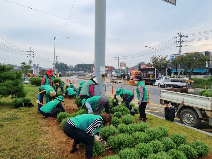 경기 양평군 대곶면 행정복지센터는 지난 28일 가을을 맞아 대곶면 행정복지센터, 대명리 입구 등 화단에 가을꽃인 국화를 식재했다. 사진은 이날 봉사자들이 국화를 식재하고 있는 모습.(사진제공=양평군청)