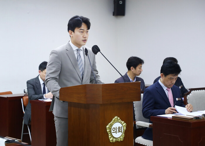 | ▲ 제300회 임시회에서 발언하고 있는 최상진의원 (사진=송파구의회 제공) |