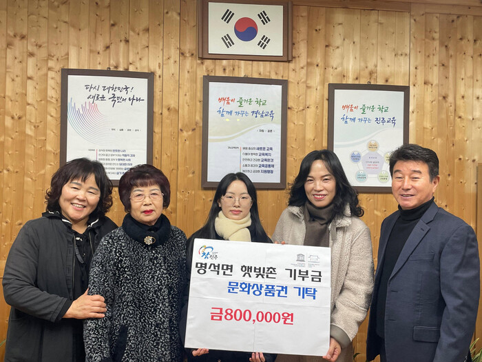 이번 기탁은 명석면 주민자치복합문화관 내 햇빛촌(면민소통방)을 이용하는 주민들이 자율적으로 기부한 성금으로 이루어졌으며, 명석중학교 졸업생 8명에게 각 10만 원씩 전달되었다.