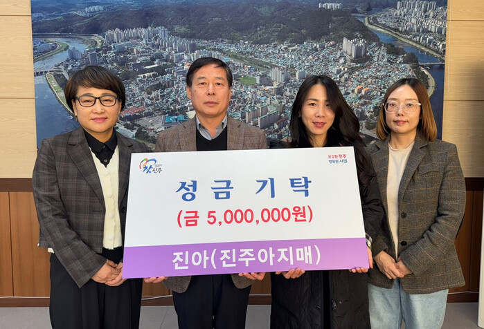 이태경 회장은 “진주아지매는 지역사회의 일원으로서 책임감을 가지고 지역민들의 복지 향상과 지역사회 발전을 위해 노력하고 있다”며 “이번 성금이 도움이 필요한 이웃들에게 큰 힘이 되길 바란다”고 전했다.