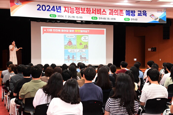 진주시는 25일 시청 2층 시민홀에서 진주시민을 대상으로 ‘2024년 지능정보화서비스 과의존 예방교육’을 실시했다.