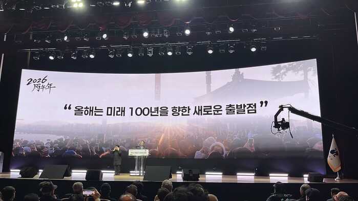 이날 행사는 1부 ‘신년하례’와 2부 ‘새로운 도약’으로 나뉘어 약 80분간 진행됐다. 오후 3시 국립국악고와 타악그룹 고리의 오프닝 공연으로 막을 올린 행사는 국민의례와 내빈 소개에 이어 국립국악고 소리누리예술단의 신년 연주회로 분위기를 고조시켰다.