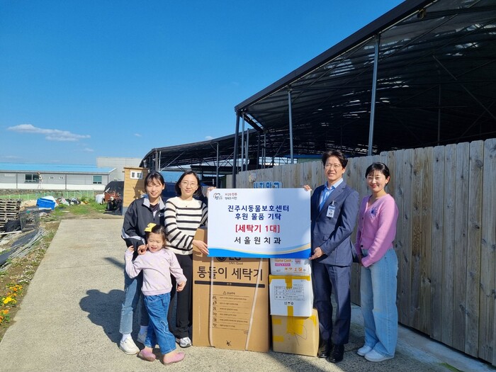 진주시 동물보호센터는 지난 24일 서울원치과(원장 신소영)에서 세탁기 등 센터 운영 물품을 기부했다고 밝혔다.