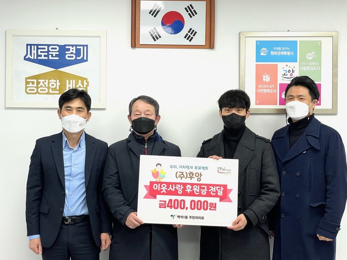 이 날 전달된 후원금은 ‘우리, 가치먹자 프로젝트 ’로 모인 적립기부금 20만원과 후앙이용권 20만원 총 40만원으로, 백석1동 지역사회보장협의체에서 추천한 기부대상 가정 중 두 가정에 전달되었다.
