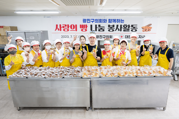이날 제빵 봉사활동에는 구의회 신진호 부의장을 비롯해 김상희 의원 및 대한적십자사봉사회 광진지구협의회 봉사자 10여명이 함께했으며, 대한적십자사 서울지사 북부봉사관에 모여 계량에서부터 반죽, 포장에 이르기까지 제빵 과정에 참여했다.
