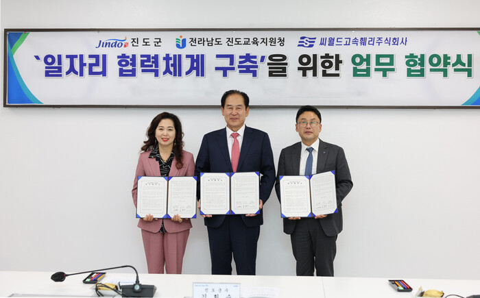 이번 협약은 군-씨월드고속훼리(주)-진도교육지원청 등 3개 기관이 ▲전문 인재 양성 ▲지역 내 일자리 창출 ▲지역 인재 채용에 기여하기 위해 마련됐다.