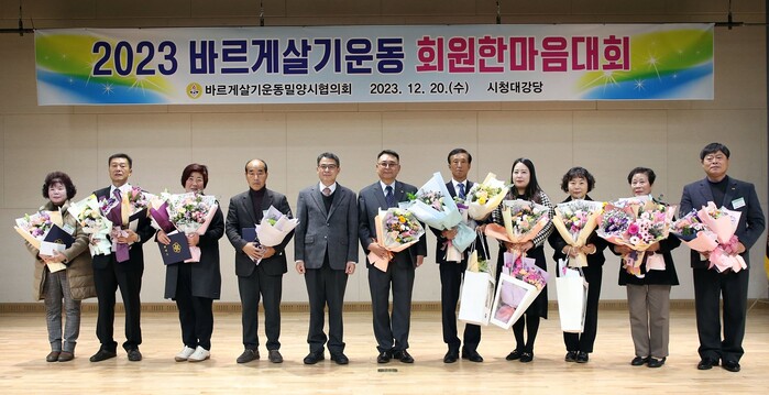 [밀양=최성일 기자] 바르게살기운동 밀양시협의회(회장 김상원)는 20일 시청 대강당에서 올 한해 수고한 유공회원 및 단체를 격려하고 그동안의 활동 성과를 공유하기 위한 2023 바르게살기운동 밀양시협의회 회원 한마음대회를 개최했다.